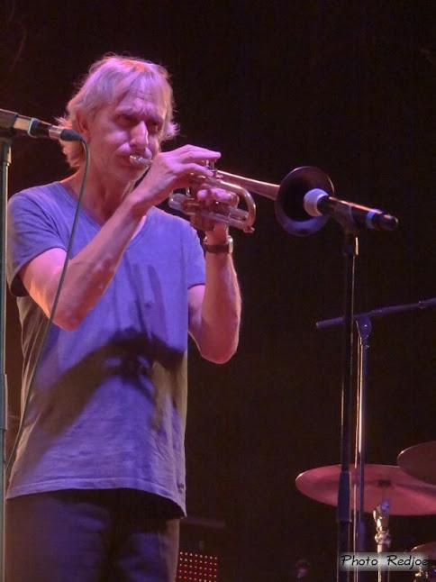 Puis il change de registre pour le deuxième volet, intitulé "Red & Black Light", issu de son album éponyme. La partition est beaucoup plus groove, électro, presque dance. La magie du trompettiste réside dans son mélange de styles très divers et son ouverture aux femmes et aux hommes. Le public ne s'y trompe pas, il le suit dans toutes ses propositions, chante en répétant les vers suggérés, danse en suivant les pas proposés. La communion est réelle et profonde.