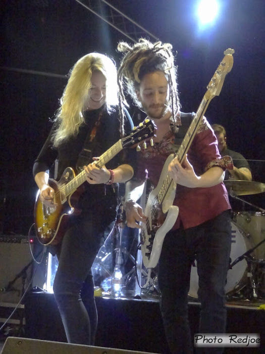 La complicité entre Joanne shaw Taylor et son bassiste est certaine. Les échanges de coup d'oeil ou de sourires sont légion. Mais je trouve que ce dernier "l'a un peu trop facile". son jeu manque de punch. Comme le disait un copain: "il se croit dans un concert de reggae".